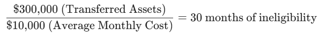 When his daughter applied for Medicaid, the state reviewed her financial records. Because the $300,000 was transferred within the five-year look-back period, Medicaid deemed it an improper transfer to qualify for benefits. They calculated a penalty period (a period of ineligibility) by dividing the transferred amount by the state’s average monthly cost of care (let’s assume $10,000).